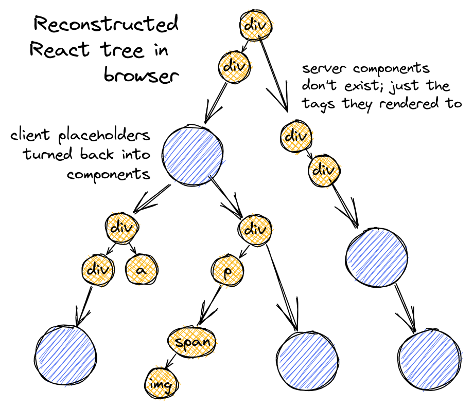 위 구성요소를 통해 서버에서 이 Payload를 생성한 뒤, 클라이언트가 이(Payload)를 기반으로 컴포넌트 트리를 완성할 수 있도록 넘겨준다. 나온 김에 설명한 내용이지만 사실 이 과정이 서버 컴포넌트가 렌더링되는 첫 번째 스탭이 된다.